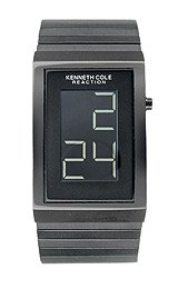 Make a bold statement with this sleek, modern digital watch from Kenneth Cole Reaction. The rectangular case is crafted from black stainless steel and presents on a matching black steel expansion bracelet that's comfortable, attractive, and easy to wear. The case and bracelet are uniform in width, for a streamlined, aerodynamic look. The innovative black dial features an extra large vertical digital display, with hours placed above minutes. An off-center crown adds to the contemporary look.